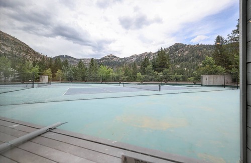 Retreat to this charming ski-in/ski-out studio condo nestled in historic Olympic Valley, The studio condo overlooks Palisade Tahoe Lodge’s tennis courts with views of tranquil Tahoe pines and the valley peaks..