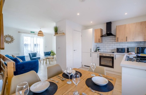 This exceptional residence designed to provide a sophisticated coastal retreat that seamlessly blends comfort and style. You are welcomed into the ground-floor porch area and outside deck. On the first floor, you can find the expansive open-plan living room and kitchen with everything you need to cook up a feast for the group and ample seating to eat together. The living-room features a smart TV and plush seating to enjoy your favourite movies. Enjoy afternoons from the balcony which extends from the lounge and makes the most of the sea views. The second floor features the sleeping quarters, each as beautifully decorated as the next. There is a master bedroom with a king-size bed, smart TV and an en-suite, a room with two single beds, and an additional cozy double room. The family shower room with its sleek features is also located on the second floor.