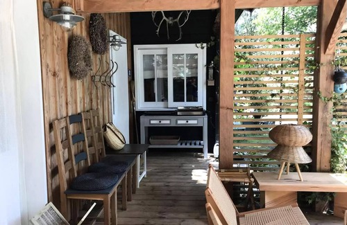 Accommodation: Welcome to this house nestled in the heart of the pine forest in a peaceful impasse, this house welcomes you for an unforgettable stay with family or friends!This house includes a veranda with lounge area allowing you to enjoy nature even when time does not allow you to be completely outside, a fully equipped kitchen open to the dining room (coffee maker, refrigerator and small integrated freezer, oven, microwave, induction hob...), bathroom, separate toilet, 1 bedroom with double bed 140 x 190 cms. The floor consists of a mezzanine with a space with a sofa and a double bed 140 x 190 cms. There is a closed garden, tables, chairs, parasols... so you can fully enjoy the outside.