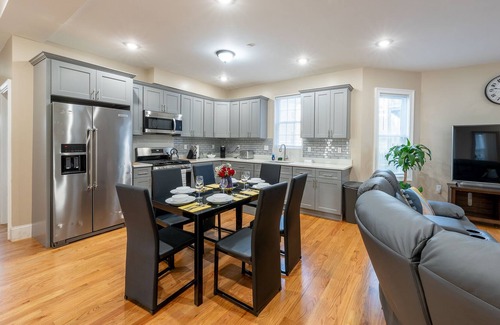 Experience togetherness in our newly renovated apartment in center of Boston! With 4 bedrooms, each furnished with a large TV and free Wifi and internet, it accommodates up to 14 guests. There are 2 full bathrooms and convenient first-floor access, it's perfect for family trips. Two parking lots will ensure a hassle-free stay. Ideal for multigenerational trips, our family-friendly haven welcomes elders and children. Reconnect with loved ones in our welcoming space for a truly special stay.