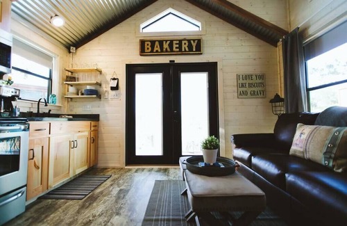 Second, the D6 Retreat side of the property features 4 tiny homes each with their own private kitchens, restrooms, laundry, mini-split ACs and TVs (sleeping details are listing on the map). There is also a 4-bedroom house with fireplaces, full kitchen, laundry, 2 full bathrooms, soaking tub, and plenty of space on the back deck for nightly chats and gathering.