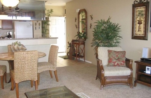 We also have a 3rd Floor Unit. VRBO listing 442242. Our dream came true when we purchased this second floor, double master bedroom condo in beautiful Wailea. We've rented Maui condos for years and have found that nothing compares to the lush tropical setting of the Grand Champion Villas. We have been disappointed a few times with units that seemed stripped down to just the bare essentials. We set this unit up to offer exactly what we would expect a condo to offer for the utmost enjoyment and comfort. When we purchased this unit, it was our desire to make it one of the nicest condos in the complex. We feel we have succeeded by doing just that. Our kitchen has new stainless appliances as well as an air fryer. This is a lock off style condo with two entry doors as well as front and back stairs. Each bedroom has a king bed (not two twins) and each bathroom features an elegant vessel sink and newly tiled showers. A recent client told us this condo was nicer than any of the top resorts on Maui. Enjoy the beautiful sunsets from the large double lanai or enjoy the 50' flatscreen TV in the living room. We provide free cable TV and high speed internet. Each bedroom offers top of the line Tommy Bahama bedding and luxurious Egyptian cotton sheets. Thick, plush Egyptian cotton towels are provided in each bath. We stocked the main kitchen with brand new dishes, and glassware as well as everything you could possibly need. Each master bedroom has a TV and its own A/C unit. There is a third A/C in the living room, but we suggest you enjoy the wonderful Maui breezes. We've just installed new screen doors that allow the tropical breezes to flow through. This condo offers the much sought after lock out feature which provides a separate entry door into the second master bedroom. This second master bedroom has a kitchenette with microwave and small fridge. The second entry door allows two couples to share the unit but still have extra privacy. We've also included beach towels, beach chairs, umbrellas and boogie boards for your beach enjoyment. Best of all, we have a on sight condo manager should you have a problem with anything. The Grand Champions Villas is an upscale award winning resort complex located in the heart of Wailea on Wailea's Old Blue Golf Course and Tennis Club. This world-class complex has two crystal-clear heated swimming pools, hot tubs, gas BBQ grills, and gorgeous lush tropical gardens and flowers throughout. Just a short stroll away is the elegant Shops of Wailea with numerous popular restaurants like the Tommy Bahama Cafe to choose from. You are walking distance to Wailea's beautiful swimming beaches and a spectacular paved walking path that borders Wailea's five star hotels. Enjoy the restaurants and spas at the Grand Wailea, The Four Seasons Resort and Kea Lani Resort. Kihei Town is just a few miles away if you're looking for a more laid back, casual shopping and dining area. Please check out our pictures below. Be sure to check availability on our calendar. We do have a cancellation policy, so be sure to inquire before you book.