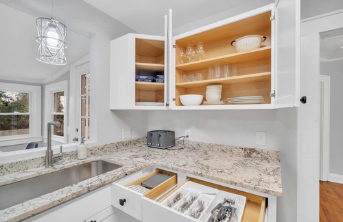 Fully Stocked Kitchen: Whether you're whipping up a quick breakfast or a gourmet meal, our kitchen has everything you need, complete with modern appliances and ample counter space.