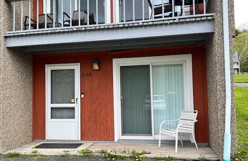 Our two-bedroom townhome with mountain views of Hunter Mountain is available all year round, to enjoy skiing, hiking, swimming and relaxing. The beautiful views of the mountain from the porch make this rental convenient and desirable. The home is located 5 minutes from the mountain, with the area's best restaurants and pubs located within minutes. The complex has its own restaurant with fine dining and bar on-site called 'Scribner Hollow.' We take pride in offering a clean, comfortable, and private modern townhome, which features a great room for excellent get-togethers and two bedrooms. This will accommodate 4 people. The kitchen comes well equipped along with a sliding door to the front balcony, with plenty of parking. So whether you like to ski, swim, hike, have a romantic weekend, or just spend quality time with family and friends- this is the vacation rental to choose from!