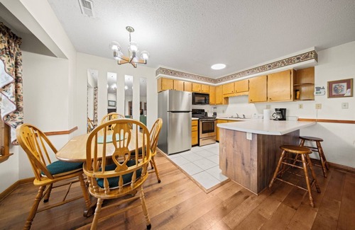 Your stay includes a two-story condo. The main bedroom features a queen bed, while the guest bedroom includes two twin beds—ideal for families or small groups. A sleeper sofa in the living area offers additional space for guests. A fully equipped kitchen allows you to prepare meals or snacks easily.