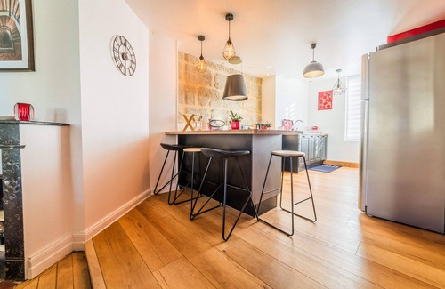 This charming 35 m² apartment, with a separate bedroom, is located on the 2nd floor without a lift. It combines comfort and authenticity.Its stone walls in the living room and kitchen create a warm and friendly atmosphere, ideal for a stay for two.The accommodation is equipped with all the necessary facilities for a pleasant stay. Its fully equipped kitchen allows you to prepare your meals with complete ease.A true cocoon blending charm and modernity, perfect for a getaway or a business trip!Please note that our accommodations are not equipped with condiments, food products (salt, pepper, oil, etc.), or toiletries such as soap. Remember to bring what you will need for your stay.Coffee maker type: L'OR small capsules