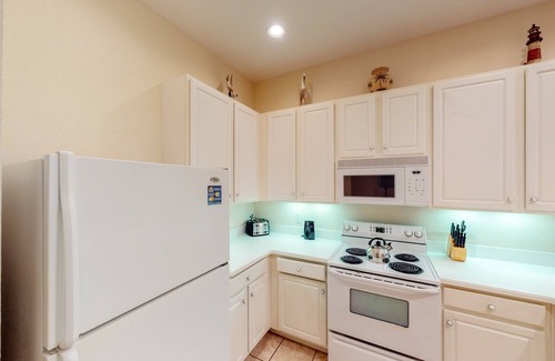 Blending comfort and value, the 2-bedroom San Salvador provides 1,116 square feet of space and enticing extras such as an in-unit laundry room, a private screened balcony and vaulted ceilings. The San Salvador includes a queen-sized bed in the master bedroom, two twin beds in the guest bedroom, and a sofa in the living room that opens into a queen-sized bed. Perfect for vacationers who have children, this villa includes a crib and a highchair, and has two full bathrooms. The San Salvador's large and fully-equipped kitchen has all the major appliances and also includes crockery, cookware, utensils and glassware so you can stay in and have family meals in the dining area. Two large televisions with included cable channels mean different groups can stretch out in the spacious living area and in the master bedroom to enjoy different programming at the same time.