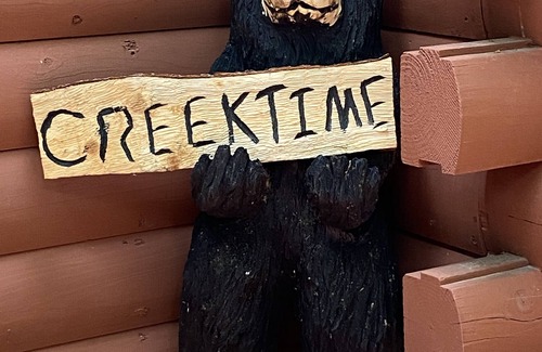 The exterior of the cabin has been freshly painted and a new metal roof installed. Outside you will enjoy the sounds of the rushing creek which is located in front of the cabin by the road. Relax in one of the rocking chairs on the front porch and listen to the creek or read a book. The hot tub is located on the front porch with wrap around porch lights for a nice nighttime ambiance. The hot tub is also covered so you can relax even if it's raining (but not lightning). There is a charcoal grill on the porch. There is one security camera pointed towards the main driveway.