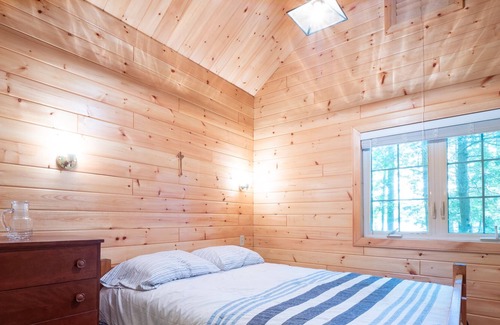 A recent addition has updated the cabin with modern conveniences, including a fully-stocked kitchen, laundry, full bathroom, and a loft space with an en-suite bathroom.