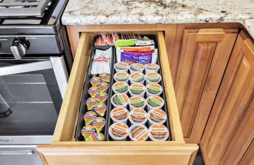 - Kitchen: stocked with a slow-cooker CrockPot, pressure cooker, toaster, blender, kettle, cooking basics, Keurig (uses both K-cups and loose grounds), & cooking and dining essentials
