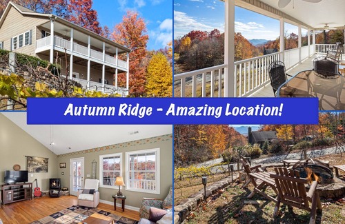 AUTUMN RIDGE CABIN offers mountain views and amazing sunrises over the Blue Ridge Mountain foothills. This lovely 3 bedroom, 2.5 bath home features mountain views off the full-length upper deck, HOT TUB, grill, and FIRE PIT.
