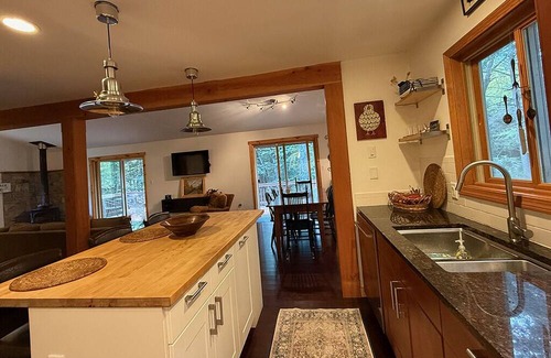 Located in Wilmington, VT, this lodge is a dream, situated close to Mt. Snow and the Hermitage Club, featuring three bedrooms: one with a queen bed, one with a king bed, and two with twin beds (plus an attached alcove with another twin bed - great for kids). The lodge also features two full bathrooms, one with a shower and the other with a tub/shower. The lodge is a classic, cozy ski/summer vacation home. Less than 100 yards to the Hermitage Golf Course, this is the perfect setting for a family that enjoys the outdoors. For Winter sports, there is Downhill skiing, Cross-Country skiing, snowshoeing, and snowmobiling, all just minutes away from Mt. Snow or the Hermitage Club. For the summer, there are two lakes nearby, and activities include the beach, golf at two courses, hiking, and biking. The lodge features a cozy great room with a wood-burning stove, a modern kitchen, and, of course, a deck perfect for summer evenings. High-speed Wifi with plenty of bandwidth is included. Book now and enjoy everything this phenomenal lodge has to offer.