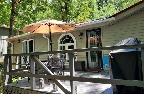 Located on the Balus Creek finger of Lake Lanier, our home features 3 bedrooms and 2 bathrooms in a wooded residence area. Enjoy the serenity of the backyard deck and treat yourself to a BBQ cookout with the propane gas grill. Tastefully decorated interior features a 55" smart TV in the living room and 42" smart TVs in each bedroom. Kitchen is fully equipped with pots and pans, dishes, and cooking essentials. Conveniently located just minutes from I-985. Dock is ideal for jet skis and small boats subject to lake water levels.