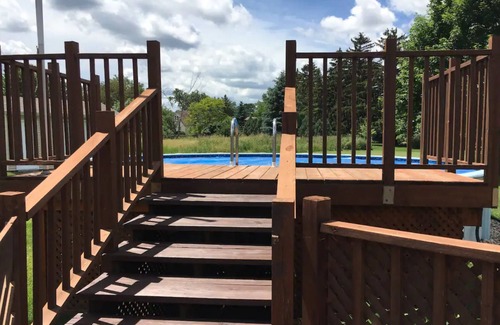 Home is located on the Northwest side of Oshkosh. Easy access to the Hwy and a just a short 15 minute drive to the EAA grounds. Please allow more time during the EAA show times. One grocery store and several restaurants are a minute drive away. 27’ round above ground pool and pool towels are available for guests. Large wooden deck and a gas grill.