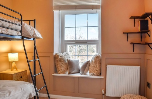 Bedroom 3: Single (3ft) Bed. Gas central heating, electricity, bed linen, towels and Wi-Fi included. On road parking 5 minutes away. No smoking. . As you step through your private entrance, a sense of warmth envelops you in this modern and welcoming property. The ground floor features a hallway and staircase leading to the first floor, where a beautiful landing awaits, bathed in natural light streaming through arched windows. On this level, a well-equipped and contemporary kitchen invites culinary endeavors, while the inviting lounge beckons with a large smart TV, a stylish electric fire and two comfortable sofas. A family bathroom with a shower over the bath completes this level. Venturing up to the second floor, discover the beautifully presented bedrooms that promise a restful night’s sleep. The master double bedroom exudes comfort, complemented by a cosy single bedroom and a bunk bedroom, perfect for children aged 12 and under.