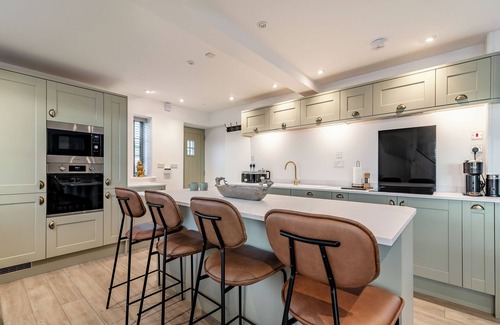 Bedroom 3: Super Kingsize (6ft) Bed, Smart TV Ensuite: Bath, Walk-In Shower, Toilet. Air source heat pump central heating, electricity, bed linen, towels and Wi-Fi included. Initial log starter pack for wood burner and wood-fired hot tub. included. Welcome pack. . Rear garden with garden furniture. Hot tub for 6 (private). Private parking for 2 car; additional on-road parking. Strictly no smoking.. Everything in this cottage is finished to an exceptionally high standard, with careful attention to detail, from the tiered garden complete with a wood-fired hot tub, to the sumptuous and meticulously appointed bedrooms each with its own en-suite shower room, everything here is crafted to delight and inspire. This detached cottage has a side patio as well as a raised enclosed garden area at the rear so that you can chase the sun throughout the day. Out here you can enjoy a barbecue or slip beneath the heated water in your own hot tub. All year round you can look forward to soaking beneath the tendrils of rising steam, whist flames heat the water to your desired temperature, and the hot tub can also be heated ready for your arrival, by prior arrangement and at cost payable directly to the owner.
