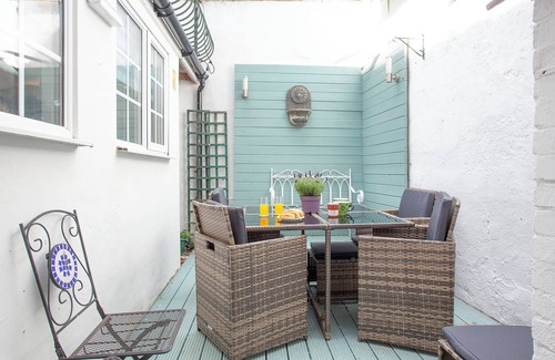 Bedroom 3: Kingsize (5ft) Bed. Gas central heating, electricity, bed linen, towels and Wi-Fi included. 2 travel cots and highchairs available on request. Enclosed courtyard garden with garden furniture. Enclosed courtyard garden with decked area and garden furniture. Public car park 175 yards away, parking permit for 1 car included. No smoking. Please note: There are 1 step to terrace and 1 step in the enclosed courtyard garden.. Beachside is a spacious, terraced, three-storey holiday home situated in the heart of the popular seaside town of Teignmouth, just a couple of minutes’ walk from the golden sandy beach and promenade. Grade II listed and built in the 1820s, this terraced property oozes character and is comfortably furnished to accommodate six guests. The property has Wi-Fi, Alexa and Smart TV. The owners also provide free parking for the nearby public car park. Once inside the house the ground floor boasts stained wooden flooring and has been tiled in the kitchen. The kitchen is well-equipped and the adjacent dining room is a great space to enjoy a family meal, with patio doors leading out into the courtyard garden. After a fun-filled day exploring South Devon, you can relax in the cosy living room in front of the 55" Samsung QLED Smart TV which has many apps such as Netflix/Prime (your own login is required) and Freeview TV. Guests will get a good night’s sleep in the three comfortable bedrooms, two of which are on the first floor. One is a double with private shower cubicle and the second is your choice as a king or twin. The first floor landing area also hosts the family bathroom with second showers to one end and an additional separate toilet, with an external door accessing the balcony at the other. The third king bedroom is on the second floor with a view towards the port and up the estuary over the rooftops.