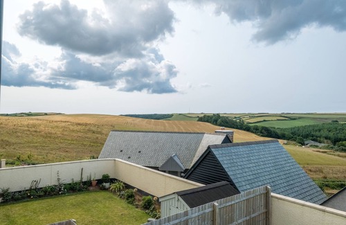 With views stretching across the fields towards a horizon that drops into the sea, this brand new house in the picturesque village of Malborough is contemporary, welcoming and perfect for a peaceful holiday in South Devon.