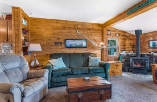 Located on a Serene lake in the North Woods of Wisconsin. Enjoy beautiful sunsets while relaxing on top of the boathouse overlooking the crystal clear lake. Enjoy your favorite beverage on your own sandy beach. Take the Kayaks , Canoe or Paddleboat for an adventure around the lake. For an additional fee, explore the lake on a pontoon boat located feet from the home. You may be lucky enough to see the Northern lights while having a campfire on the beach! Also, an additional campfire area with three swings around the fire pit for entertainment and story telling! Inside, we have Bernie the Bear and all the comforts of home for your stay. The Kitchen is fully stocked down to the spices . Living room has a woodburning stove , and comfortable chairs overlooking the lake. Bedrooms all have Queen Beds . Mindy and I hope you enjoy your stay at our paradise in the North Woods! We are always available to answer questions and accommodate to make your stay memorable!