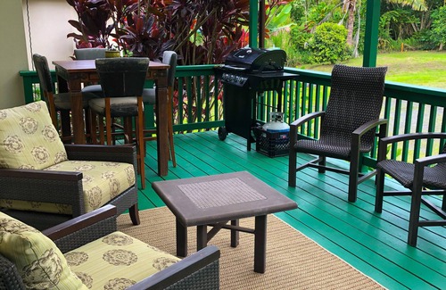 This is an Incredible opportunity to escape from the busy resorts and retreat to a private three acre estate with your loved one's, family, friends or solo. The Hana Nautilus features ocean views from all the rooms. The screened lanai has a massive wood slab dining table that seats 8 and two cozy couches for relaxing while you listen the sounds of the rainforest birds, the seasonal stream and distant big waves crashing . The Kitchen has granite countertops, new stainless appliances, coffee maker and lots kitchenware for those who chose to cook at home. The owners live about 1/2 mile away so you have the property to yourself plus we are easy to reach for anything we can help with.