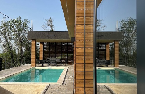 Outdoor kitchen with BBQ, swimming pool with a beautiful view