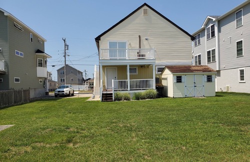 Lovely 3 BR 2 Bath Condo located in a family-oriented neighborhood on the 1st floor with 2 Private Decks and full yard, shared with 2nd floor neighbors, for BBQ. Off street parking for two cars in driveway. Your beach getaway will accommodate 8 Guests comfortably and is pet friendly. Linens are provided at no addl. cost. Additionally, you will have a fully stocked eat in kitchen, with coffee maker, waffle maker, toaster, dishwasher, microwave and stove/oven. If you don't feel like cooking, there are many restaurants within a few blocks; The Wharf, Mudhen Brewery, The Dog tooth, Santorini's, The Waterfront, The Boathouse, Mulligans, to name a few. Though it is only a 10-minute walk, a complimentary parking pass is provided should you care to park closer to boardwalk. Weekly rentals available along with discounts for longer stays. We ask that the primary occupant is 25 years or older and that maximum occupancy is limited to 8 guests.