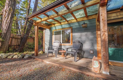 #3 CABIN COUPLES KING BED HOTTUB BEACH is located in Ucluelet. #3 CABIN COUPLES KING BED HOTTUB BEACH provides accommodation, featuring Parking, View, Security/Safety, among other amenities. This Cabin features Parking, View, Security/Safety, to make your stay a comfortable one.