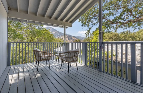 Welcome to your spacious and modern retreat at Sequoia! Just 12 min to the park, even less to Lake Kaweah & hiking/biking trails. After exploring, unwind in the hot tub, walk 10 mins to the river & restaurants or cook on the patio or fully stocked kitchen.