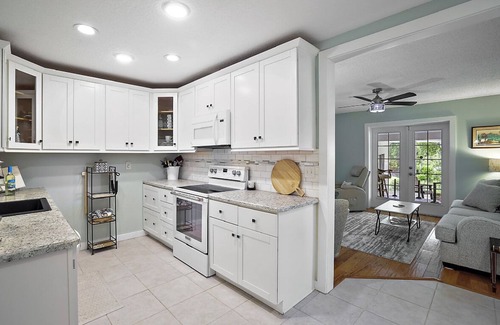 Our vacation rental is equipped with modern conveniences to ensure a comfortable stay. Enjoy access to a fully stocked kitchen, complete with a coffee bar, cooking utensils & the spices, perfect for whipping up delicious meals. We also have a grill for those wanting to BBQ! Stay entertained with Xfinity cable with over 100 channels. For added convenience and protection, we provide Wi-Fi, laundry facilities, parking for up to 4 vehicles, and an ADT system for extra security.