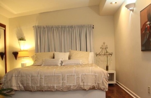 Wood flooring throughout. Vaulted ceilings, several skylights, recessed lighting, mirrored wardrobe doors, wifi internet, and basic cable. Private paved alley entrance, with room to park 2 unrestricted street parking as well. The alley is nice for morning/evening walks with friends, family, and dogs.