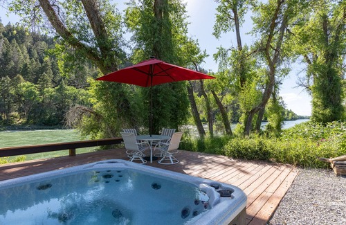 Base location to Jackson Hole, Yellowstone, and Tetons. Swan Valley, Idaho. Custom Ranch Home on 3.5 acres with 300 feet waterfront on the upper South Fork of the Snake River, famous blue ribbon fly fishing. River deck with hot tub. Huge grass yard for many games (in garage). Covered patio with BBQ and outdoor dining and seating area. Private master suite and two additional guest rooms with their own living area and kitchenette. High-end finishes with Jackson Hole decor. Fully stocked chef's kitchen. Toiletries in all bathrooms, washer/dryer.