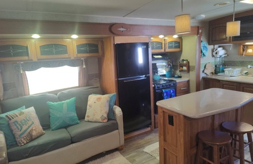 35 ft RV, large deck, intercoastal sunset, campground across street from ocean is located in North Topsail Beach. 35 ft RV, large deck, intercoastal sunset, campground across street from ocean provides accommodation, featuring TV, Balcony/Terrace, Fireplace/Heating, among other amenities. This House features TV, Balcony/Terrace, Fireplace/Heating, to make your stay a comfortable one.