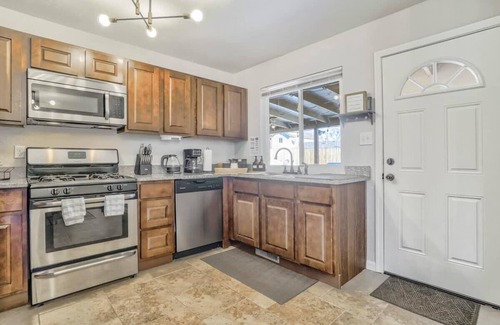 This upbeat 3-bed, 1-bath home offers more than just pleasant accommodations. Special thought has gone into making this a FUN place to stay! The backyard has a grill & fire pit, plus outdoor games. A recreation room offers foosball that is convertible to a compact pool table, and slide hockey. There’s a TV in every bedroom. The location is exceptional – check a map! You’re moments from several major roadways that will carry you to everything you’ll want to see in the region. 10 minutes to Ft. Carson and Cheyenne Mountain Park.