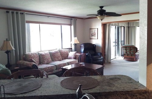 Welaka, the "Bass Fishing Capital" of the world awaits you. This second floor condo is on the end of the building overlooking the pool to the South.. Beautiful sunsets from sunroom overlooking the St. Johns River. Xfinity cable WiFi with 4 flat screen TVs, one in each bedroom and one in living room. Sleeps 6: King MBR, Queen in 2nd BR, 3rd BR has twin beds, Sunroom. Washer and Dryer included. Assigned boat slip for your exclusive use. Laid back, quaint, "old Florida" golf cart friendly town. Please note this condo is NOT handicap-accessible. Located on the second floor, there is no elevator. Need a 2BR handicap-accessible condo in the same community for a week or longer? Check out VRBO property # 2125972.