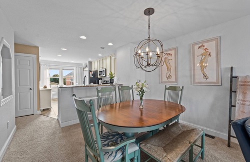 Experience a fantastic and unforgettable coastal escapade when you book this four-story home! Enjoy a fantastic location just a short one-mile drive from the closest public beach access, which is called the \'Kill Devil Hills Bath Houseâ€, located at the end of Ocean Bay Blvd. You will be able to enjoy the beach in no time! Discover a plethora of great dining options within a mile of your home as well. Other great attractions nearby include the Wright Brothers National Memorial, Outer Banks Kayak Adventures, Lost Treasure Golf, Dowdy Park, Jockey\'s Ridge State Park, and more. When you book this breezy home away from home, you are granted access to fantastic community amenities, including an outdoor pool (perfect for a refreshing dip after a day at the beach), a workout facility, a business center, and a boardwalk with sound/kayak access. This multi-level home features four well-appointed floors. The basement level features an inviting seating area with a sofa bed, plenty of children-friendly games, a smart TV with streaming and cable, and direct access to a private patio. The second floor hosts two bedrooms, one of them being a primary suite. This suite enjoys a smart TV, an en suite bathroom, and access to a sunny deck. The second guest bedroom features a smart TV and deck access as well. Another flight of stairs will lead you to the main living space located on the third floor. This open-concept area has access to a furnished deck. Surprise your loved ones with delicious homemade meals and snacks thanks to the well-appointed kitchen. When mealtime is over, curl up on your favorite sofa and watch a favorite show or movie on the smart TV. And last, but certainly not least, the fourth level has a primary suite that encompasses the entire floor. The suite offers a cozy seating nook, a smart TV, and an en suite bathroom. Additional perks include a stacked washer/dryer, free WiFi, and central AC. COMPLEX AMENITIES