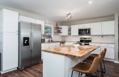 Come enjoy your stay at the Green Grove, in the heart of Jacksonville. A lively 4 bedroom home. Newly renovated with new appliances , and fits 8 guests. We carry all items you would need from a fully stocked kitchen to 1 gig of high speed internet , and board games for the whole family. We have an in unit washer and dryer and 2 full baths. We are plant enthusiasts which is why you'll find exotic house plants throughout the property.