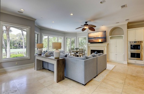 This elegant 6-bed, 6.5-bath refuge on the “Gold Coast” of Sea Pines is nestled among moss-covered sea oaks and swaying palm trees just minutes from the beach. Enjoy stunning golf course and lagoon views from many rooms and your private *heated pool and spa. And make yourself at home in the wide-open floor plan that is tastefully, thoughtfully appointed, and decorated. Don’t miss the 2nd-floor master suite with your blissful private deck overlooking the lagoon. A home that’s simply perfect for large families or golf groups. This is pure Gold–Coast living! This lovely beach home recently was updated including new interior paint through out, all new furniture (including bedding and mattressses) as well as artwork and new tv's during winter of 2025.