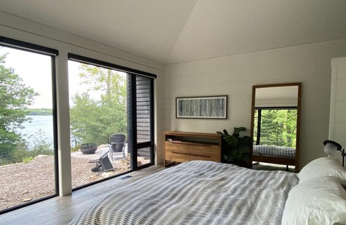 This exceptional property offers expansive vistas from every room of Whitefish Lake, with cathedral ceilings in the principal rooms. The spacious open concept living and dining rooms are ideal for entertaining guests. The overall design of this newly crafted property is a modern twist on a classic cottage. There are floor to ceiling windows allowing for great natural sunlight throughout the day and unobstructed views of Big Whitefish Lake.