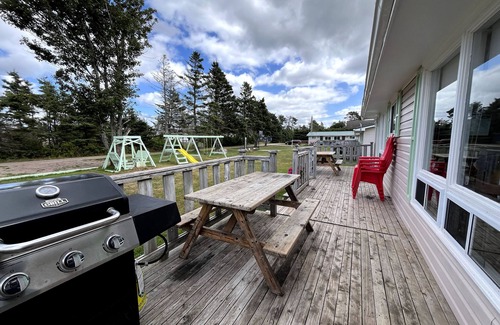 Welcome to our cozy seaside retreat, nestled right next to PEI National Park. Imagine waking up on a sunny day, brewing coffee in your full kitchen, and enjoying breakfast on the deck. Just a 5-minute walk takes you to Stanhope Cape Beach, a pristine paradise. In the evening, barbecue, roast marshmallows on the firepit, or unwind with a 50-inch smart TV. Charlottetown is a short 20-minute drive away, with EV chargers on-site. Our family-friendly cottage has excellent guest feedback.