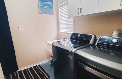 ✔ Fully stocked kitchen with high end appliances including induction stove, fridge with ice maker, microwave, dishwasher, toaster, kettle, and Keurig coffee maker.