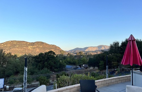 Set on 2 acres of land, enjoy this 3500 square foot home with a beautiful view. Large pool and deck, BBQ area and various dinning areas. Walk to the chicken coop for fresh eggs daily or harvest your own fruit or veggies from the orchard and vegetable garden. Mountain hiking at Laguna mountains, 4000 elevation 15 min away, or enjoy the local Alpine Brewery down the road. Set 30 min to the east of San Diego, driving to the city or sites is close by. There is enough space in the house for at least 8 guests, with 3 bathrooms, 4 bedrooms and extra dens to enjoy.
