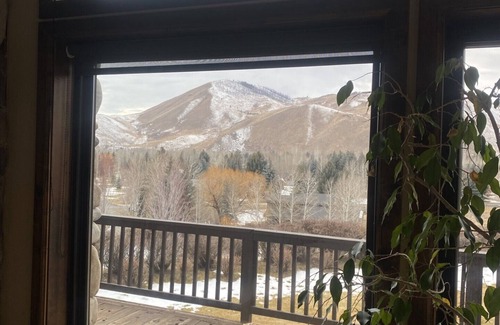 Stay comfortably less than ten minutes from River Run lift at this private 1 acre, 4-bedroom executive chateau. Six miles south of Ketchum with 1 king bed and 3 queen beds, this fabulous property has tree top mountain views. A cozy retreat for a fabulous ski vacation. Enjoy the convenience of all amenities you expect. Thirty foot river rock fireplace, large custom kitchen, jumbo smart TV's, wi-fi, private office, expansive patio's, decks and washer/dryer. Relax in one of the 4 bedrooms, with sweeping mountain views complete with a jetted bathtub. We hope you enjoy what our place has to offer.