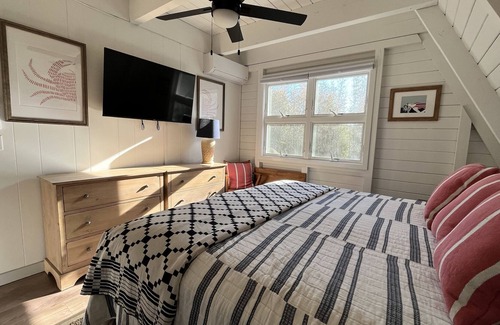 Two bedrooms are on the main floor, one with 1 king bed, and one with 1 queen bed, along with a full bathroom with stall shower. Send the kids upstairs to the two additional bedrooms, one outfitted with 1 twin and 1 full bed, and the other with 2 queen beds. There is also a half bathroom on the upper level.
