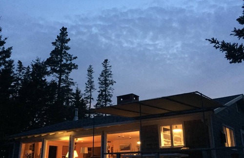 Does the vacation you are envisioning include waking up to breathtaking views of schooners passing by as you sip your hot morning coffee? Or perhaps enjoying a glass of wine after a long day of exploring everything the coast of Maine has to offer? Or maybe you are just looking to escape the busy, fast paced reality of your life so you can experience "The Way Life Should Be?" If you answered yes to any of these questions, then we would love to welcome you to enjoy our beautiful home overlooking the Penobscot Bay Thoroughfare. Our wonderful family home boasts a PRIME oceanfront setting. overlooking the Deer Isle Thoroughfare, multiple islands, including Sheep and Saddleback Island, as well as many other nearby islands. It has a diverse shoreline with both rocky frontage and beach area, as well as trails through the 100 acres of woods the property sits on. The interior of the house has an open floor plan with lots of sun spilling in through the panoramic shore facing windows. Enjoy sweeping ocean views from the open living room, dining area, and kitchen, along with master bedroom. There are four total bedrooms (1 king, 1 queen, 2 with built in twin bunks (each sleep 2) - lower bed suitable for children, top bunk has no railing). There are 3 baths and washer and dryer. Step back outside to the wrap around deck, with its gorgeous views over the water and out to the surrounding islands. The Main House is but a stones throw from hundreds of feet of gorgeous shore front comprised of large granite boulders, tidal pools, pebbled beach, sandy beaches, and dock.