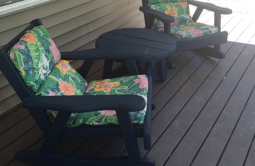 Chalet at Snyder's Run is a 4 bedroom chalet style home situated on a large lot that backs to a creek and woods (easily accessible; plenty of space for boat parking). 1 1/2 miles from Snyder's Run Boat Launch. This vacation home has all of the comforts of home! Large fully stocked kitchen with stainless steel appliances; Central AC with several ceiling fans as well. There is a dining table with seating up to 8 with a counter with three counter stools. There are 4 bedrooms, a loft, and 2 full bathrooms. Master bedroom has a king bed and a private full bathroom. The second bedroom has a queen bed. The third bedroom has a queen bed. We have a bedroom upstairs off of the loft with 4 twin beds and a full pull out. The loft has 2 love seat sleepers and overlooks the great room. We provide pillows, blankets and comforters. No other linens are provided. There is a large flat screen satellite connected TV with DVD player with limited WiFi. All bedrooms have a tv, upstairs bedroom has a DVD player. Unfinished basement has ping pong table, corn hole, shuffleboard, and air hockey. Covered front porch (8' x 50') and large spacious deck (14' x 50") w a large Weber propane grill, overlooking the creek and woods. Below the deck is a waterproof patio w a Tiki bar and a Hot Tub! Deck has a 10’x12’ canopy for some shade! Outdoor fire ring adjacent to creek and back deck. Plenty of space for boat parking. Only 45 minutes from State College...great place to stay after going to a PSU Home game!! 5-7 minutes from Juniata College!! 15-17 minutes from Seven Points beach area!!