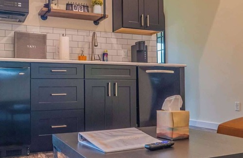 - Each cabin includes a fully stocked kitchenette with a sink, coffee maker, induction cooktop, and microwave.