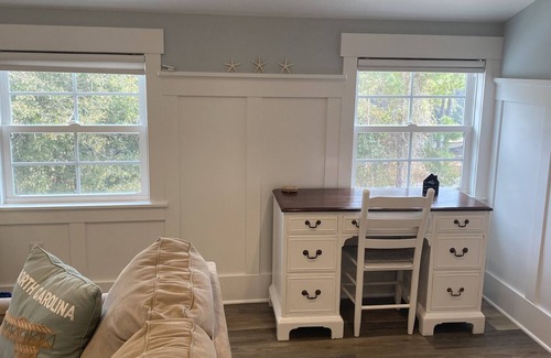 Beautiful upstairs apartment is perfect for a couple looking to enjoy a vacation on Emerald Isle. The apartment is only a 4-minute walk to a quiet public beach access and a short bike ride to the heart of the island's restaurants and shops. This property is less than 1/2 mile to the public boat marina and includes a private parking spot.