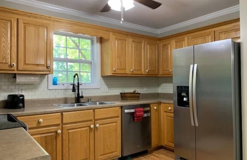 Relax with the whole family at this peaceful place to stay. Spring Creek Cottage # 2, 400 Yards from the boat ramp, 3 bedrooms, 2 and 1/2 bathrooms, newly renovated, walk to the lake if you like. The cottage main level has Family room, Kitchen, Dining area, Master Bedroom and Bath, washer and dryer, plus 2 porches, the down stairs has 2 bedrooms and a full bath and 1/2, plus a covered bbq area with gas grill. Enjoy some of the best bass fishing in the nation on Guntersville Lake which covers 108 square miles! Within half a mile of Publix grocery store, beverage store and gas station. Just minutes from the new Guntersville City Harbor. And just 15 minutes from the new Sand Mountain Park and Amphitheater. Guntersville is host to Bass Fishing tournaments, Boat Races, Festivals, Zip Line adventures and Rock the Dock. With great local food venues, Craft Beer Breweries and 2 State Parks near by, Guntersville State Park and Cathedral Caverns State Park, there is always plenty of adventure. Our address is 2413 Luther Street Guntersville AL 35976. If you need 2 cottages side by side, ask for availability.