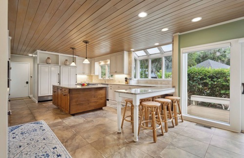 ✓ Dining table seats 6, plus 6 at the kitchen island.