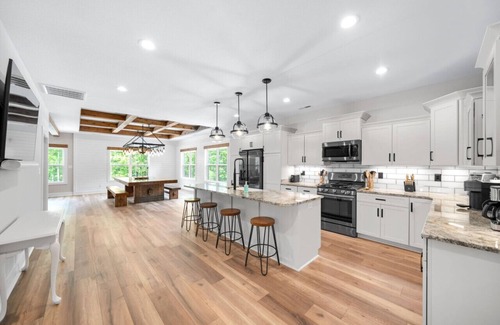 410/Massive New Construction Home is located in Clarksville. 410/Massive New Construction Home provides accommodation, featuring Fireplace/Heating, Guest Services, Entertainment, among other amenities. This House features Fireplace/Heating, Guest Services, Entertainment, to make your stay a comfortable one.